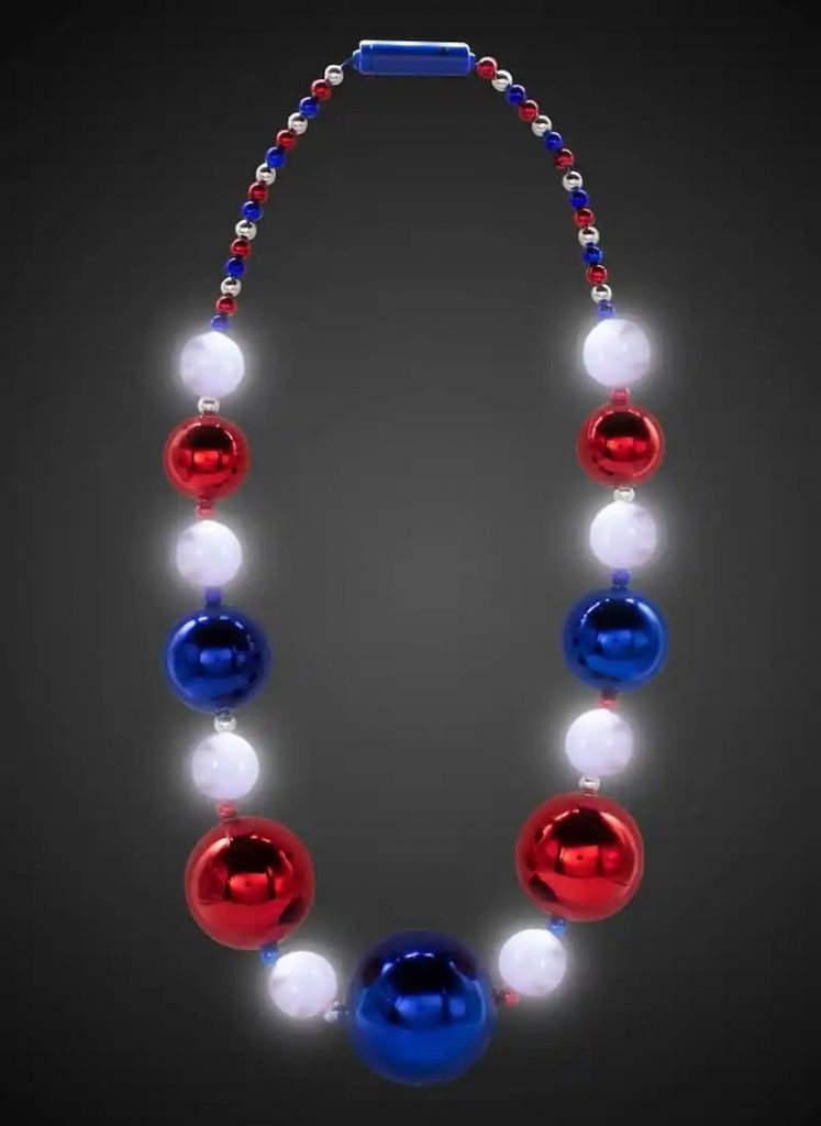 Wearing some red, white and blue beads around your neck is a simple way to accessorize for the Fourth of July Holiday. However, if you want an easy way to show your patriotism, but want to make sure you stand out from the crowd, then these 41” beads will do the trick. Simply throw them around your neck, turn on the LED Lights and you are set for day and night.