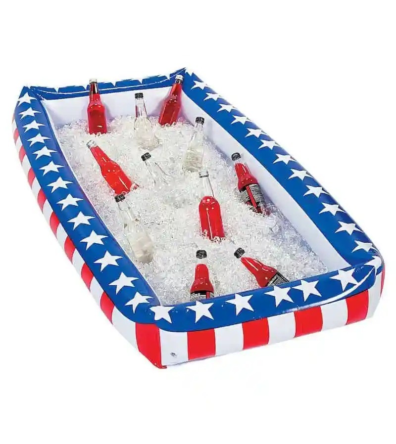 Do you need a way keep a massive amount of beers and white claws cold, while not taking away from the aesthetic value of your awesome Independence Day Decorations? Ditch those leaky, styrofoam coolers and upgrade to this sweet, inflatable, raft, cooler thing with a red, white and blue American Flag design. Put it on a table, float it in a pool or lay it on the grass. The possibilities are endless!